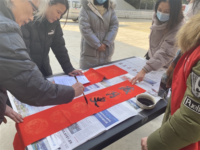 走進(jìn)社區(qū)送祝福。參與聯(lián)點(diǎn)共建昭亭社區(qū)“我們的節(jié)日·春節(jié)”新時(shí)代文明實(shí)踐志愿服務(wù)活動(dòng),以送春聯(lián)形式為社區(qū)居民送上新春祝福。活動(dòng)現(xiàn)場,志愿者們忙前忙后傳遞紙墨,書法家們在一張張紅紙上盡情地?fù)]毫潑墨,一個(gè)多小時(shí)的時(shí)間,書寫春聯(lián)等上百副。一副副春聯(lián)給社區(qū)居民們送上了新春的祝福,一張張福字更是讓大家感受到濃濃的傳統(tǒng)年味。