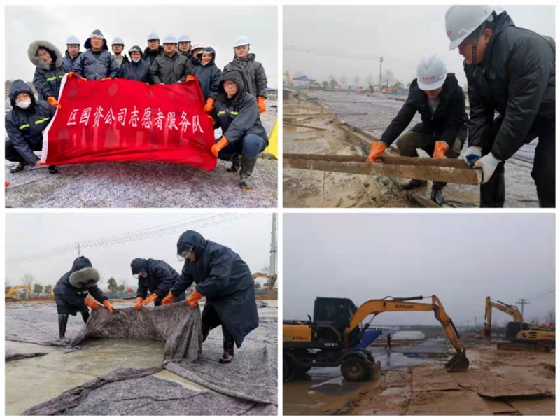 2月2日,農(nóng)歷大年初二,雨雪交加。區(qū)國資集團黨員突擊隊、志愿者服務(wù)隊前往疫情防控隔離點協(xié)助搬運材料、清理廢渣、鋪設(shè)防凍布等,項目現(xiàn)場一派繁忙景象。下午項目建設(shè)組開始布置班組,明日正式開始準備區(qū)折疊房吊裝施工,確保春節(jié)期間施工組織有條不紊,有序推進。