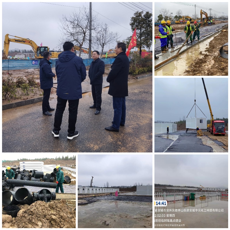 正月初三上午,區(qū)委副書記、區(qū)長俞志剛到宣州區(qū)疫情防控臨時(shí)隔離點(diǎn)工地現(xiàn)場督導(dǎo)項(xiàng)目建設(shè),副區(qū)長汪海洋陪同。俞志剛對項(xiàng)目建設(shè)速度給予充分肯定,向春節(jié)期間冒著雨雪天氣加班加點(diǎn)的項(xiàng)目建設(shè)者表示親切的慰問。上午,現(xiàn)場工人正在對路面沉降縫進(jìn)行切割、對積水較多區(qū)域進(jìn)行排水,為下一步吊裝工作做好準(zhǔn)備。截止目前,臨時(shí)隔離點(diǎn)北邊庫房、醫(yī)護(hù)辦公、醫(yī)護(hù)宿舍合計(jì)36套已吊裝結(jié)束,即將完成22套準(zhǔn)備區(qū)用房吊裝工作。
