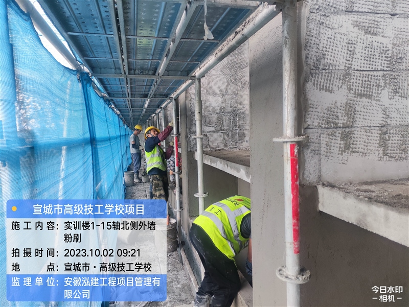 在高級技工學(xué)校項(xiàng)目上,為保證學(xué)校按時(shí)開學(xué)招生,施工隊(duì)伍正在進(jìn)行墻面粉刷及墻面保溫施工。